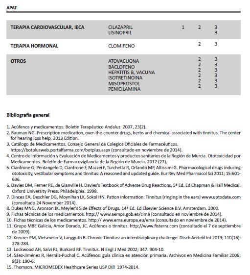 Por tanto, los acúfenos son una manifestación clínica de la ototoxicidad coclear o auditiva. En este documento revisaremos concretamente aquellos fármacos relacionados con el desarrollo de acúfenos,si bien, en muchos casos se desarrolla de forma paralela la toxicidad vestibular que presenta otros síntomas tal como se ha descrito.